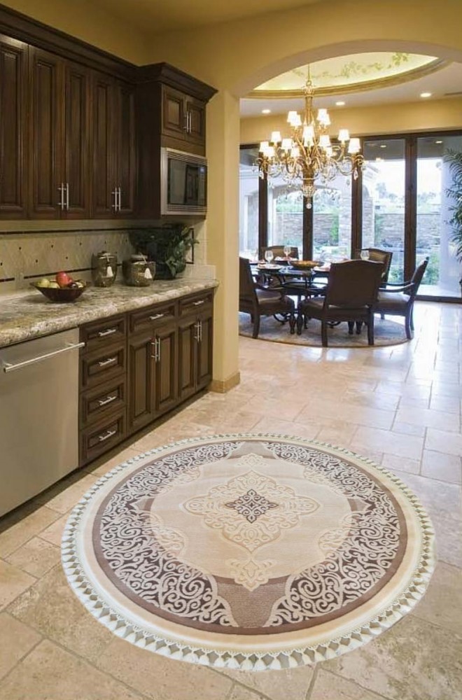 Egy elegáns, klasszikus mintájú kerek szőnyeg valósággal beragyogja a szobát és a nappalit. A nappaliban a mai divatos, kerek, vagy ovális dohányzóasztal alá tökéletes választás.