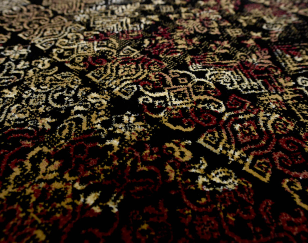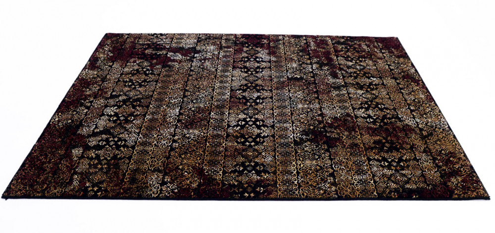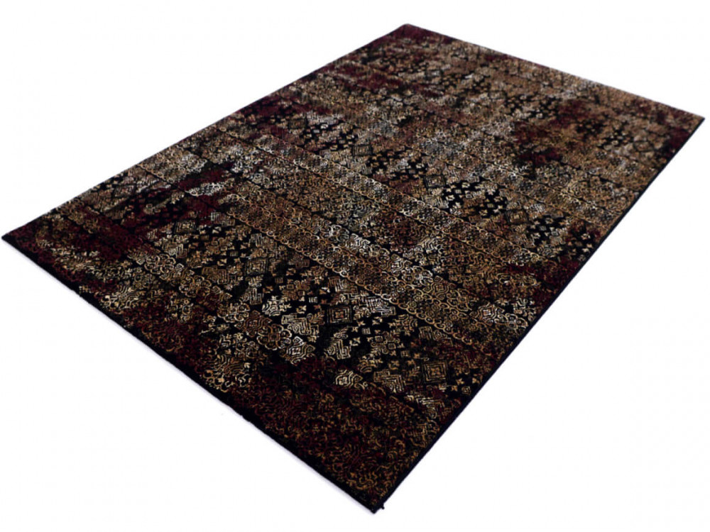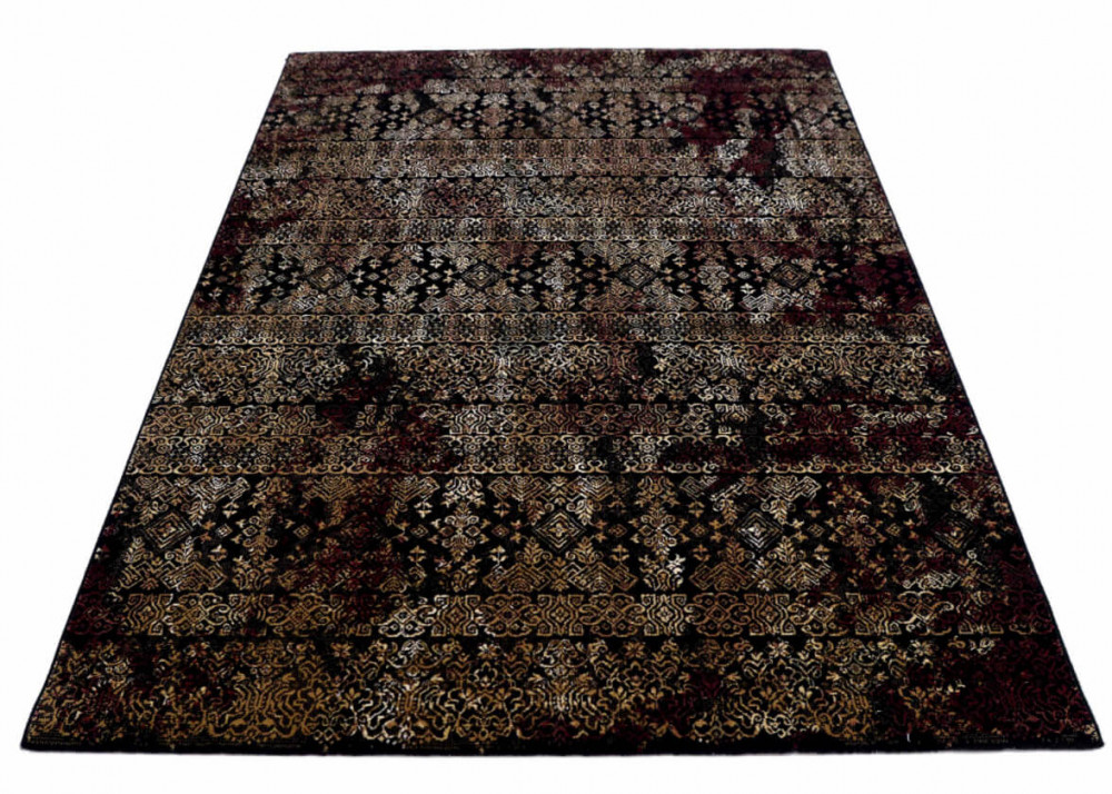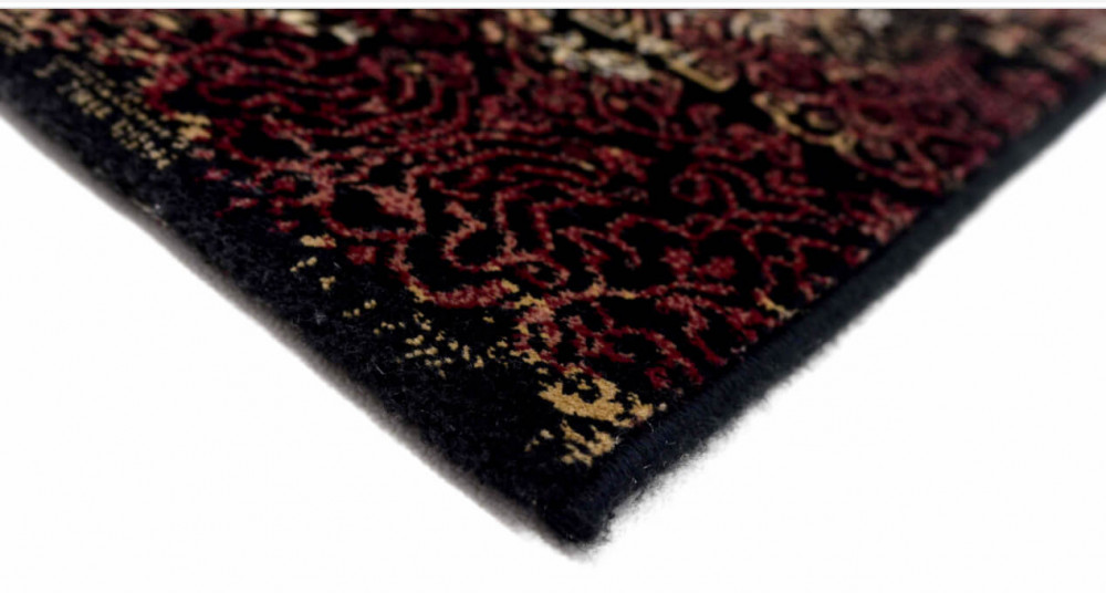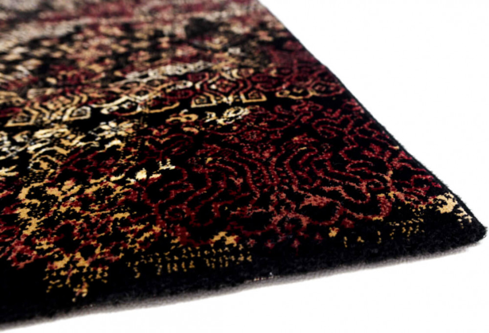 Különleges fekete, piros, bordó, arany színű belga szőnyeg.